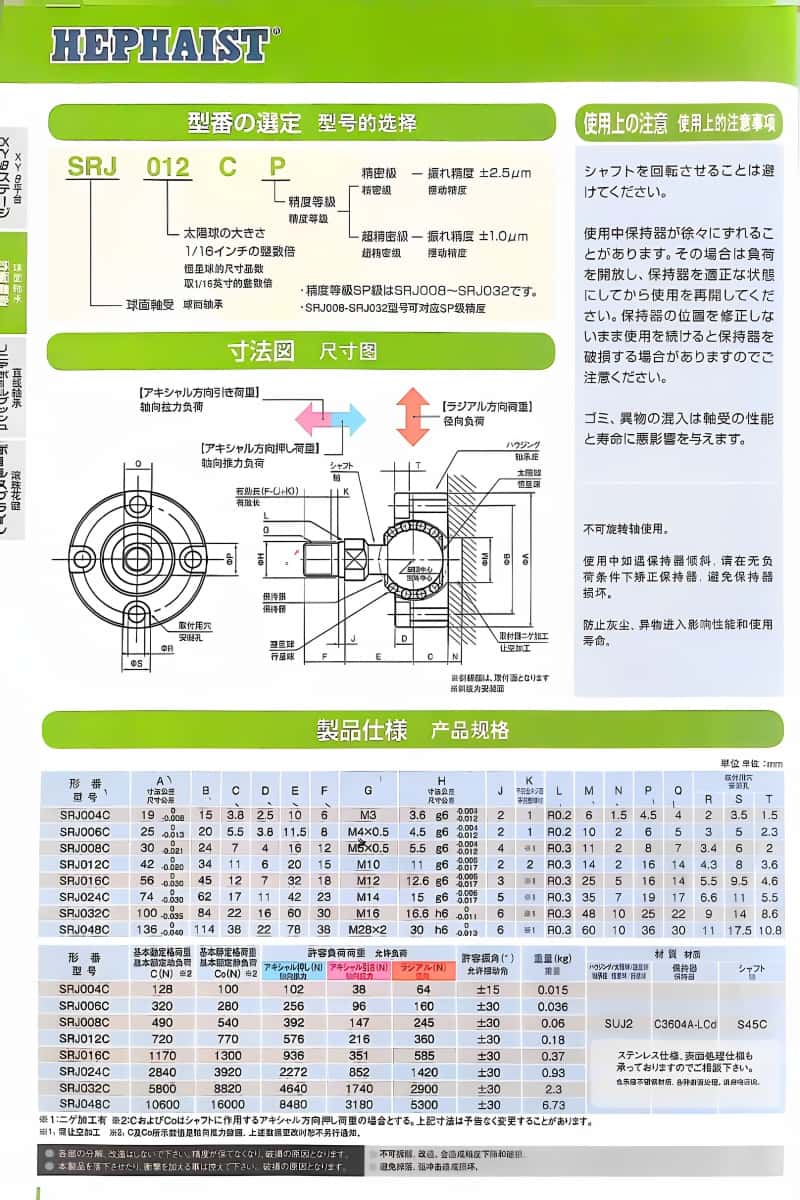 Hephaist萬向球鉸, SRJ012CP