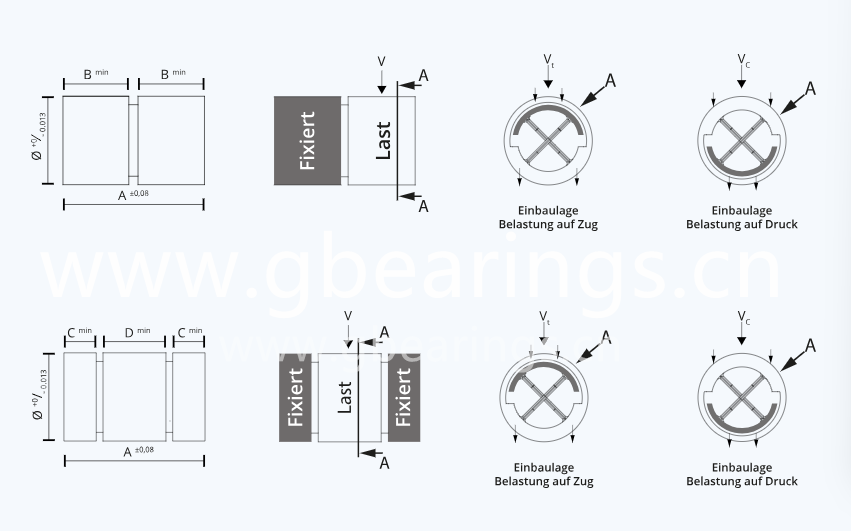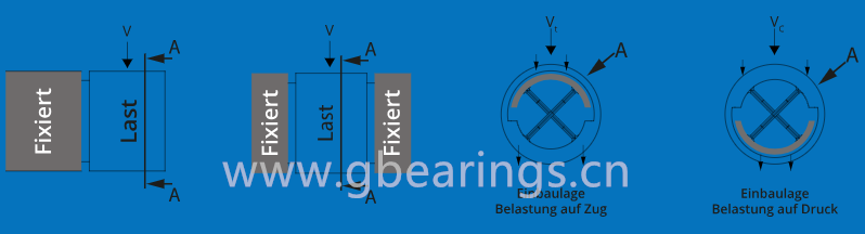 根據十字彈簧接頭的安裝位置(見圖),彈簧承受不同的載荷。在Vc的情況下,載荷通過前套筒或中套筒作用在彈簧上,牢固插入的半殼體在壓力下加載,因為下班殼體牢固的支撐在后部或兩個外部軸承部件中. Vt產生拉伸載荷。