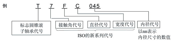 ISO355所規定的公制系列的圓錐滾子軸承中, 有不依據以往所使用的3xx尺寸系列的新尺寸。其中一部分記載于尺寸表。外圈寬度、外圈滾道的小端面直徑及接觸角與ISO的規定一致、內圈組件和外圈均具有*際互換性。其型號不同于以往的公制系列,構成如下。