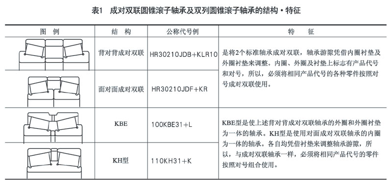成對雙聯圓錐滾子軸承及雙列圓錐滾子軸承的結構、特征