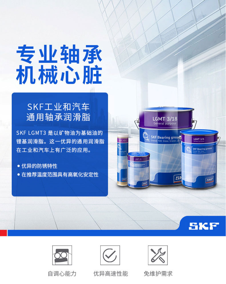 SKF工業(yè)和汽車通用軸承潤滑脂 SKF潤滑脂是以礦物油為基礎(chǔ)油的鋰基潤滑脂。這一優(yōu)異的通用潤滑脂在工業(yè)和汽車上有廣泛的應(yīng)用