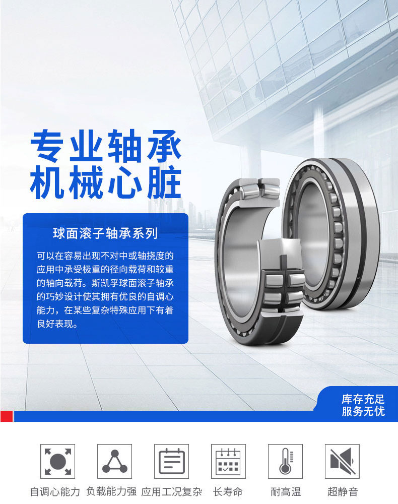 對稱滾子的自我調整,提供**的負載分布沿滾子長度。這使強調低所有負載條件下,延長了軸承的使用壽命。