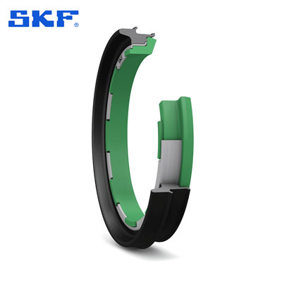 基本SKF Trackstar密封件設計,采用聚氨酯密封圈和丁腈橡膠彈性體。 用來密封銷和軸套之間的油,并排除污染物。 彈性體提供靜態密封能力。 密封件內徑上的肋使得油可以通過以提供必要的潤滑。